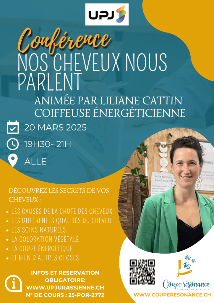 Je vous proposerai également une conférence sur le thème « Nos cheveux nous parlent », pour explorer ensemble le lien entre nos émotions, notre histoire de vie et notre chevelure.